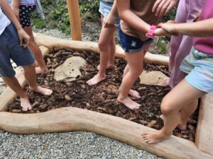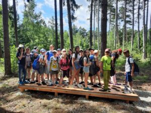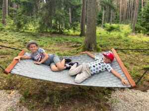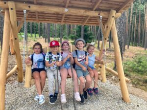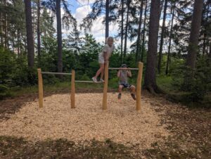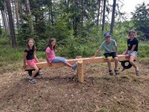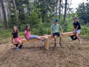 Im Heilwald angekommen, konnten die Schülerinnen und Schüler den Mammutbaumplatz erkunden und sich auf vielfältige Weise austoben. Besonders die neue Aktivzone bietet den Kindern zahlreiche Möglichkeiten zum Spielen, Schaukeln, Balancieren und Bewegen – ein echtes Highlight für Groß und Klein.
