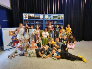 Natürlich wurde auch ein Buch gemeinsam gelesen und jedes Kind durfte einen Teil der Lektüre mit Hilfe eines Mikrofons laut vorlesen. Zur Belohnung gab es eine Eintrittskarte in die Disco. Nach einer Hitliste der Kinder legte der DJ die neuesten Hits auf und die Klassen feierte ausgelassen und tanzte bis die Sohlen rauchten.