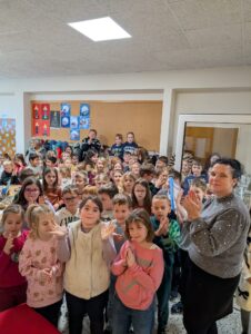 Kurz vor den Ferien wurde unsere Schulbücherei fertig möbliert und mit vielen Büchern ausgestattet. Dieses besondere Ereignis wurde mit einer feierlichen Eröffnung begangen. Die Schülerinnen und Schüler hatten dafür extra ein Lied einstudiert und sorgten für einen schönen musikalischen Rahmen.